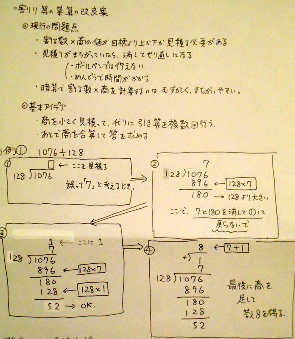 超画期的 割り算の筆算で 何度も割り直してみる 必要がないように